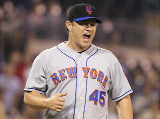 - After taking the lead in the top of the 10th on Scott Hairston's run-scoring fielder's choice, Isringhausen came on the mound stuck on 299. After striking out the first man he faced, he walked one and allowed a single. In steps Ruben Tejada, who made two pretty nice plays at short to get the last two outs and putting Izzy in elite company as the 23rd member of the 300 Save Club. After making the cut in basically a tryout this March, I'll be few expected Jason to reach 300 saves this year. The safer bet was that Francisco Rodriguez would get there first. But in a strange twist of fate, it was Izzy the Met closer getting it faster than K-Rod, now the Brew Crew's set-up man (and still stuck at 291, closest to the mark after Izzy). Congrats, Izzy! The capstone of a great career.